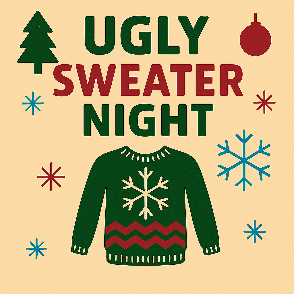 Events Ugly Sweater Night 1 (Nov 28) 21+ $25.00 Add To Cart Added! Ugly Sweater Night 2 (Nov 29) 21+ $25.00 Add To Cart Added! Elves' Workshop Night 1 (Dec 05) 21+ $25.00 Sold out Sold Out Added! Elves' Workshop Night 2 (Dec 06) 21+ $25.00 Add To Cart Added! Mr & Mrs Claus Night 1 (Dec 12) 21+ $25.00 Add To Cart Added! Mr & Mrs Claus Night 2 (Dec 13) 21+ $25.00 Add To Cart Added! Holiday Movie Night 1 (Dec 19) 21+ $25.00 Add To Cart Added! Holiday Movie Night 2 (Dec 20) 21+ $25.00 Add To Cart Added!